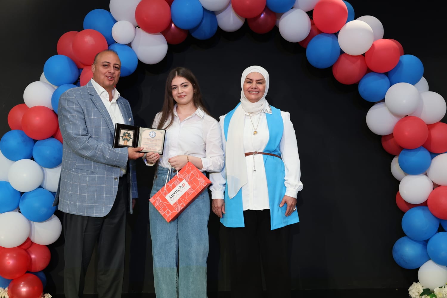 وقد قام راعي الحفل والى جانبه المشرف العام للمدارس السيدة نادية الحوراني بتكريم أعضاء الهيئتين الإدارية والتدريسية ، وتكريم نخبة من الطلبة المتميزين والمتفوقين من الفرعين العلمي والأدبي.