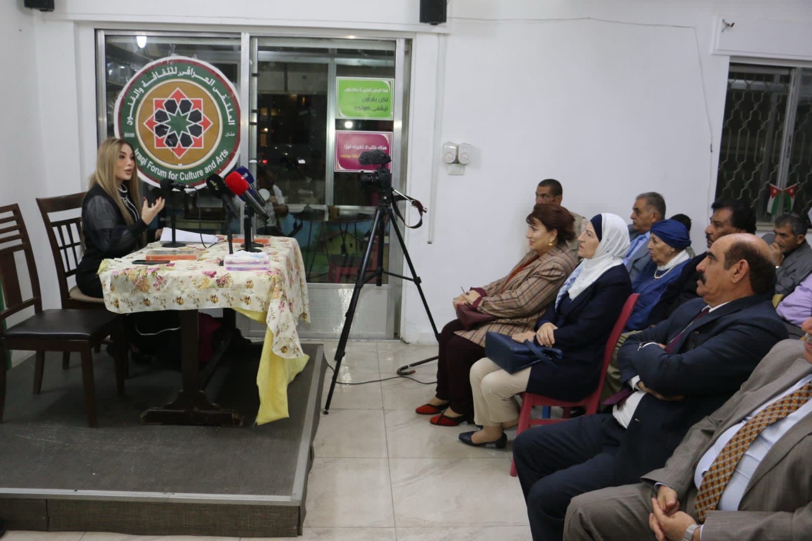 بعنوان (القضاء على العنف ضد المرأة) اقام الملتقى العراقي للثقافة والفنون في الأردن أمسيته الثقافية الاجتماعية وضمن نشاطاته المتعددة والمنوعة حيث استضاف فيها الكاتبة والاديبة سارة طلب السهيل التي القت محاضرة حول هذا الموضوع في قاعة بيت الثقافة والفنون بعمان وسط حضور لافت حيث حضر الأمسية التي ادارها رئيس الملتقى الصحفي والباحث الفنان ضياء الراوي عدداً من أعضاء الملتقى وأصدقائه بالإضافة الى عدد من الكتاب والادباء والاكاديميين والمهتمين الذين اثروا الأمسية بالعديد من المداخلات والاستفسارات .