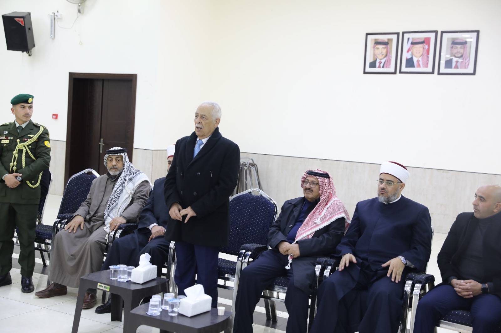 *عمان- ٥ كانون الثاني ٢٠٢٦-* مندوبا عن جلالة الملك عبدالله الثاني وسمو الأمير الحسين بن عبدالله الثاني، ولي العهد، قدّم رئيس الديوان الملكي الهاشمي يوسف حسن العيسوي، اليوم الاثنين، واجب العزاء إلى عشائر الاخرس والحسنات وطبيشات والخصاونة وآل صبحا، ناقلا إليهم تعازي ومواساة جلالة الملك وسمو ولي العهد.