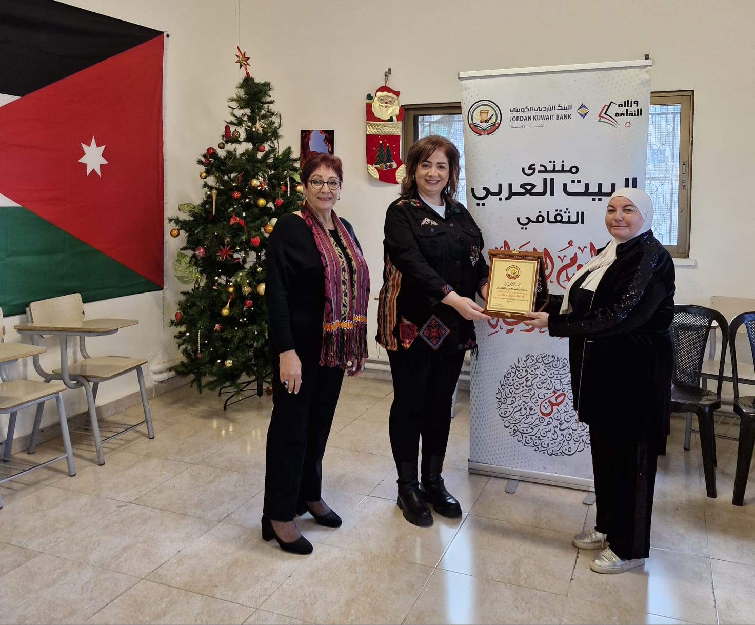 وأبدع الطلبة بإلقاء القصائد والأناشيد. وتم تقدّيم درع تقديري لمديرة المدرسة الأستاذة غدير حدادين، والتي أثنت على مبادرة البيت العربي وأكدت بأن هذا النوع من الأنشطة البناءة يرسخ التعاون والتشاركية المثمرة بين المؤسسات الرسمية والمنتديات الثقافية من أجل خلق جيل واع يدرك أهمية التعلم وأهمية لغته العربية