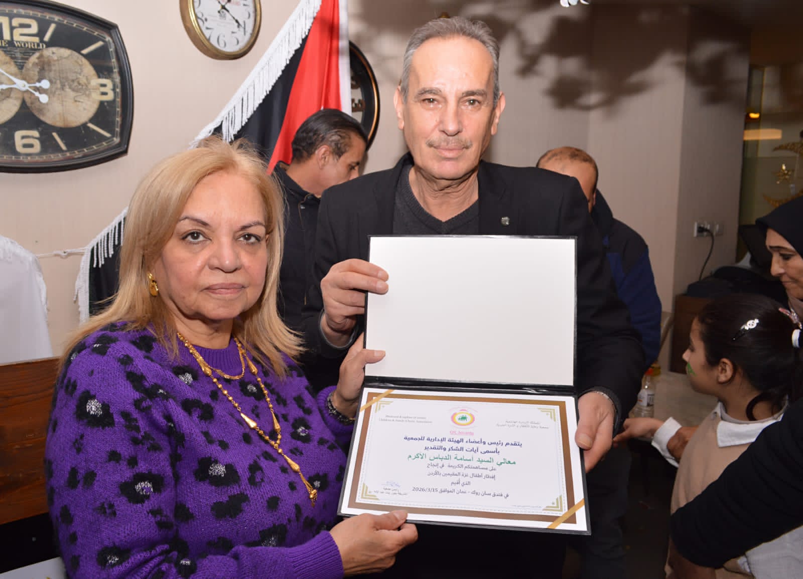 نظمت جمعية رعاية الاطفال والاسرة الخيرية التي تراسها سيادة الشريفة بدور بنت عبدالإله حفلاً خيرياً في فندق سان روك بحضور عدد كبير من الايتام وأطفال غزة وقد بدأ الحفل بكلمه لسيادتها أكدت فيها على دور جلالة الملك عبد الله الثاني ابن الحسين المعظم حفظه الله والقيادة الهاشمية في دعم الاشقاء في فلسطين لا سيما غزة وأشارت الى أن الجمعية تقوم بواجبها الانساني والديني والوطني تجاه الاشقاء في فلسطين ومستمره في تقديم رسالتها الانسانية بما يخص الاطفال والاسر العفيفة في كافة ارجاء المملكة وبعد الافطار تم تقديم مجموعة من الفقرات الفنية والترفيهية والتسلية أداها الحكواتي والمسحرات والشخصيات الالكترونية والدمى التفاعلية والرسم على الوجوة وفي نهاية الحفل الخيري قامت سيادة الشريفه بدور بتوزيع الهدايا على الايتام أطفال غزة وتوزيع الشهادات على المتطوعين وقد أدار الحفل الشاعر رامي يوسف.