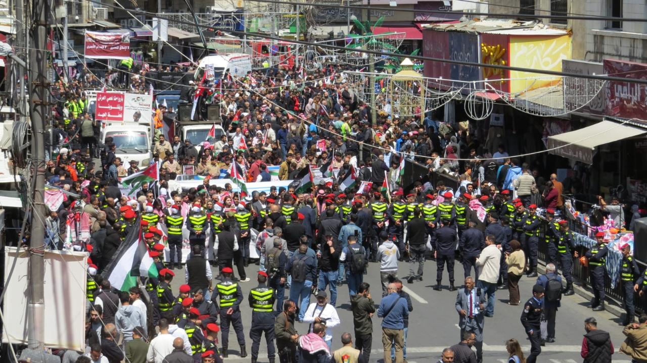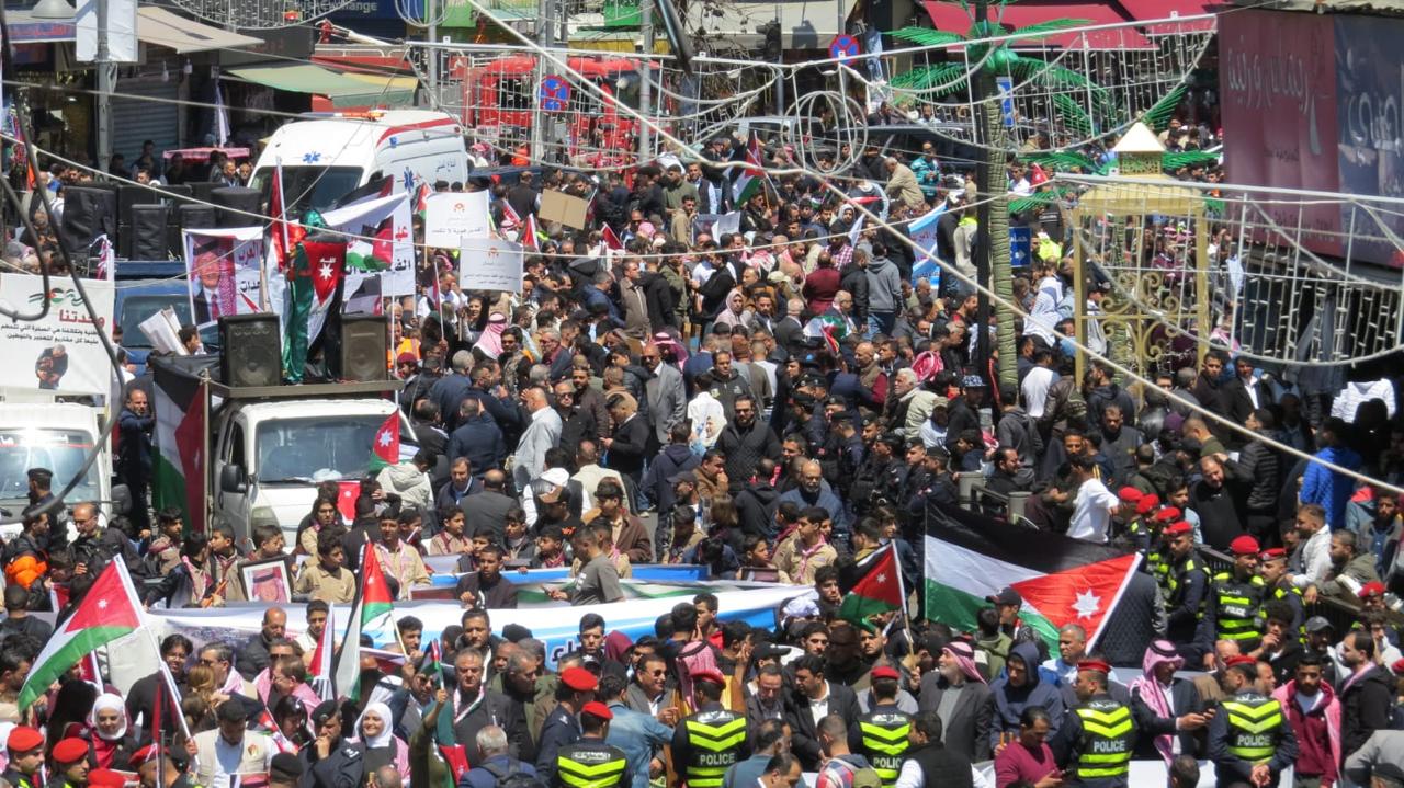 الأردنيون يتوافدون للمشاركة بوقفة ومسيرة وطنية أمام الحسيني نصرة لفلسطين وتأييداً للملك