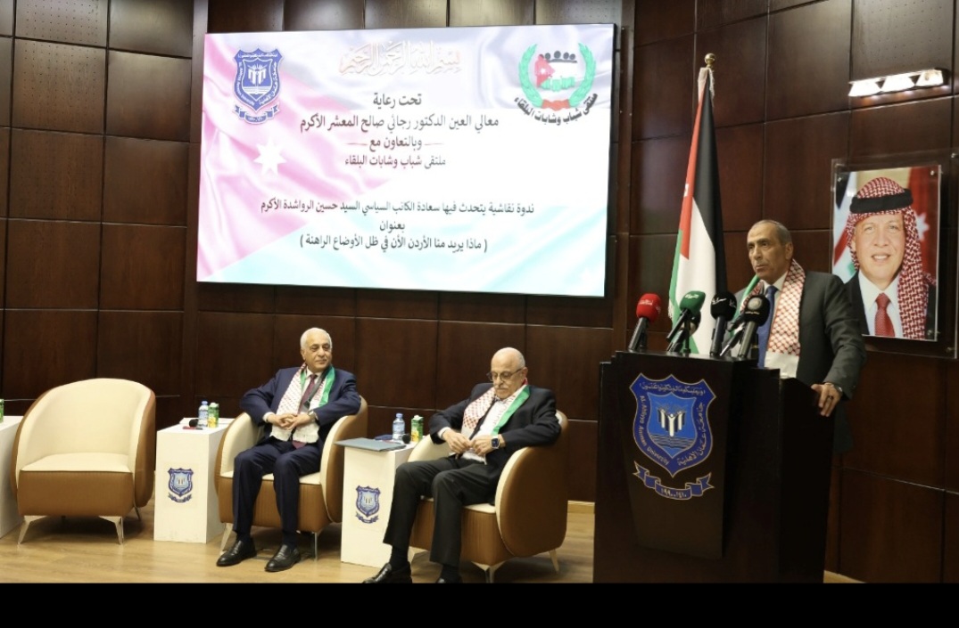 استضافت جامعة عمّان الأهلية، ندوة نقاشية بعنوان “ماذا يريد منا الأردن الآن في ظل الأوضاع الراهنة”، برعاية العين الدكتور رجائي صالح المعشر، وبالتعاون مع ملتقى شباب وشابات البلقاء، وبحضور رئيس الجامعة الأستاذ الدكتور ساري حمدان وعميد شؤون الطلبة الأستاذ الدكتور مصطفى العطيات، إلى جانب نخبة من الشخصيات السياسية والوطنية، وأكاديميين وإعلاميين وطلبة الجامعة.